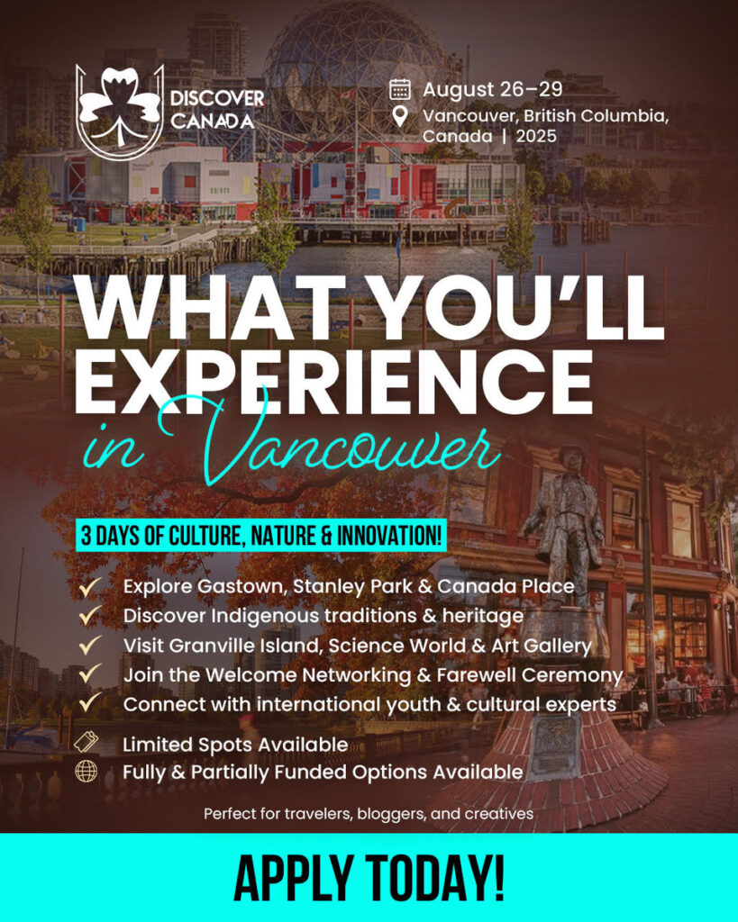 The Discover Vancouver: Cultural Exchange Program, organized by the Candiscover Travel Corp, is a unique 3-day cultural immersion experience that brings together 30 international participants to explore the rich heritage, natural beauty, and diverse culture of Vancouver, Canada.